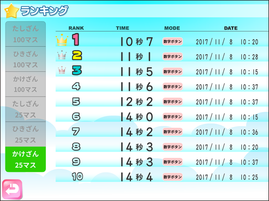 | ● かけ算/25マスモードがプレイできます。 | ||