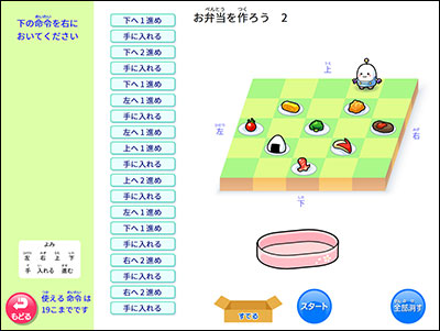 プログラミングの基礎から応用まで、学年に合わせた難易度のコーナーを収録。