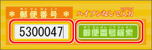 (5)郵便番号を入力します。「郵便番号」の入力欄の中をクリックして入力してください。